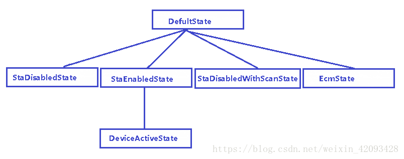WifiController 和WifiStateMachine 不同,WifiStateMachine是一个复杂的状态机,它维护了Wifi的启动、扫描、连接、断开等多个状态。WifiController 是高级别的wifi状态机,因为它管理的状态是wifi开关,wifi热点开关等状态,只有在wifi开关等具体状态下,判断wifi处于启动扫描附近热点状态等才是有意义的。