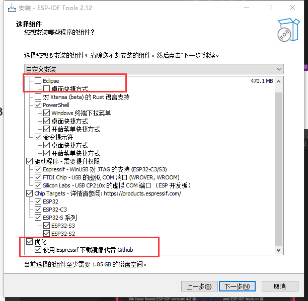 其中esp-idf可以在windows,linux,mac下开发,我们直接选择windows,另外第二个工具是可选的,至于为什么可选,我们会在下个小节来做介绍