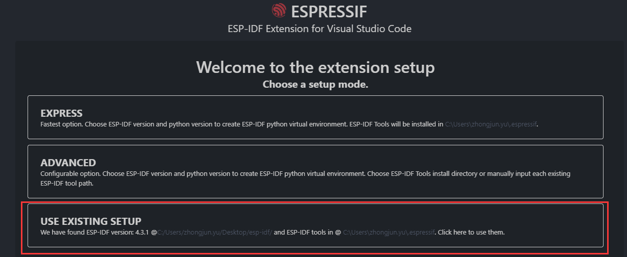 在这里我会提供两种方法来安装esp-idf,之所以会有两种方法,是因为我两台电脑,一台用简单的第一种方法安装不成功,所以我才找到了第二种安装方法!你们先可以尝试第一种方法,如果第一种方法不可行,那么再选择第二种方法!