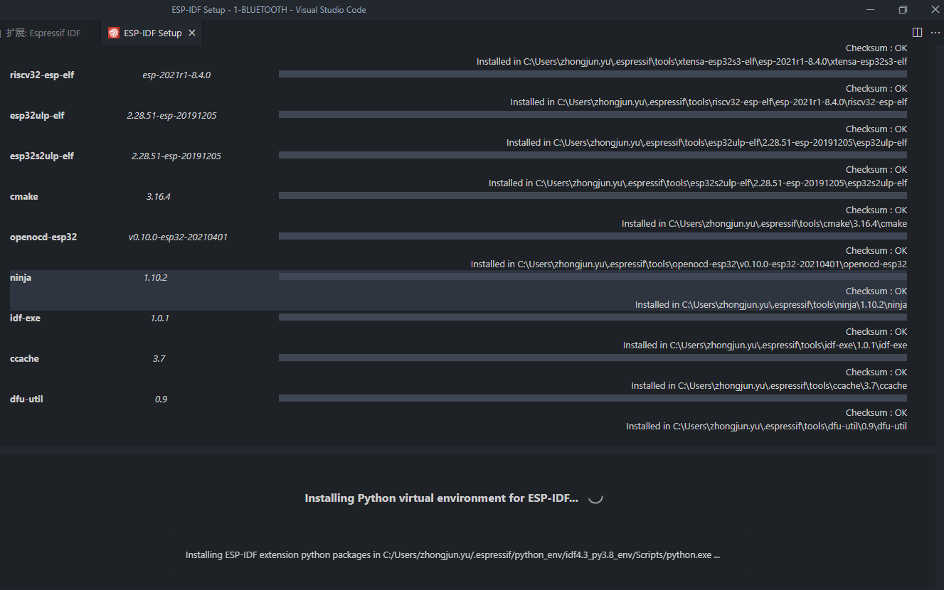 以上就是诚心泥猴桃最近收集整理的关于完整的ESP32环境搭建总结,别再因为开发环境被劝退了一. 声明二.前言三.安装方法的全部内容,更多相关完整的ESP32环境搭建总结,别再因为开发环境被劝退了一.内容请搜索靠谱客的其他文章。