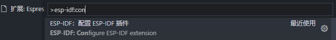 2)在VSCODE菜单中选中查看->命令面板,搜索:ESP-IDF:Configure ESP-IDF extension ,然后点击进去配置