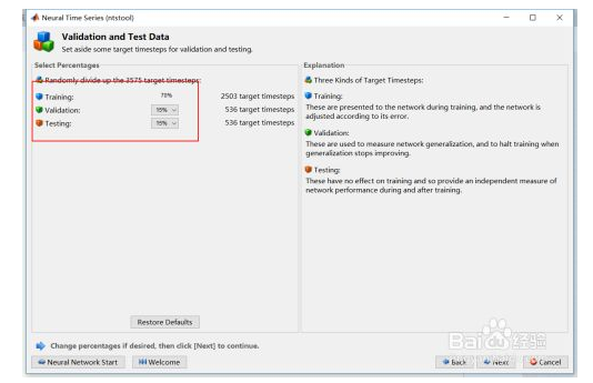 6、选择训练数据、校正数据以及测试数据,然后点击next。