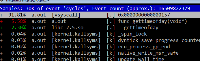 图4 clock_gettime 70%的cpu花在sys态,确实进入了系统调用流程