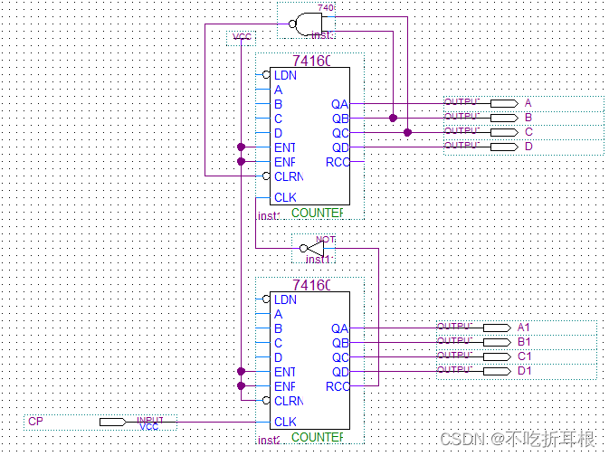 在10进制和6进制计数器都正确的基础上,连接成60进制计数器,检查功能是否正常。