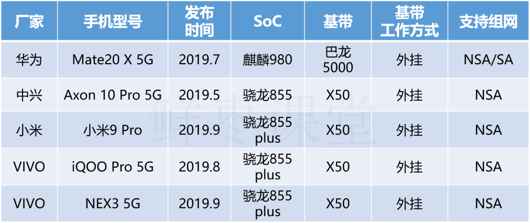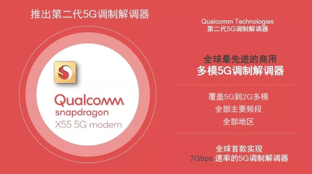 因为高通的X55要等到2020年一季度才能批量出货,所以,当时包括小米、中兴、VIVO在内的一众手机厂商,只能使用外挂X50基带的高通SoC芯片,发布自家5G旗舰。