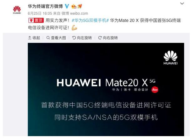 2019年7月,就在高通X55还停留在口头宣传上的时候,华为采用“麒麟980+外挂巴龙5000”的方案,发布了自己的第一款5G手机——Mate20 X 5G。 这也是国内第一款获得入网许可证的5G手机。