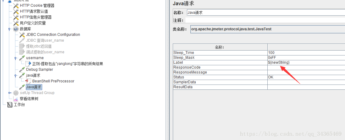 在java请求中的Label中填入newString变量的值。