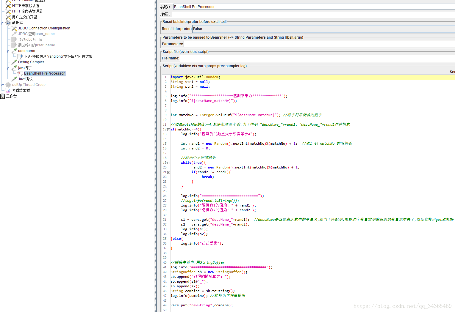 3.在前置处理器的beanshell中写java脚本,获得随机数、拼接字符串等。
