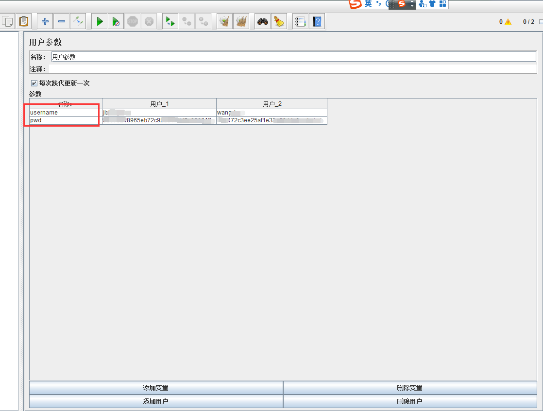 2、设置参数:下面的用户和密码做了模糊处理,勾选每次迭代更新一次