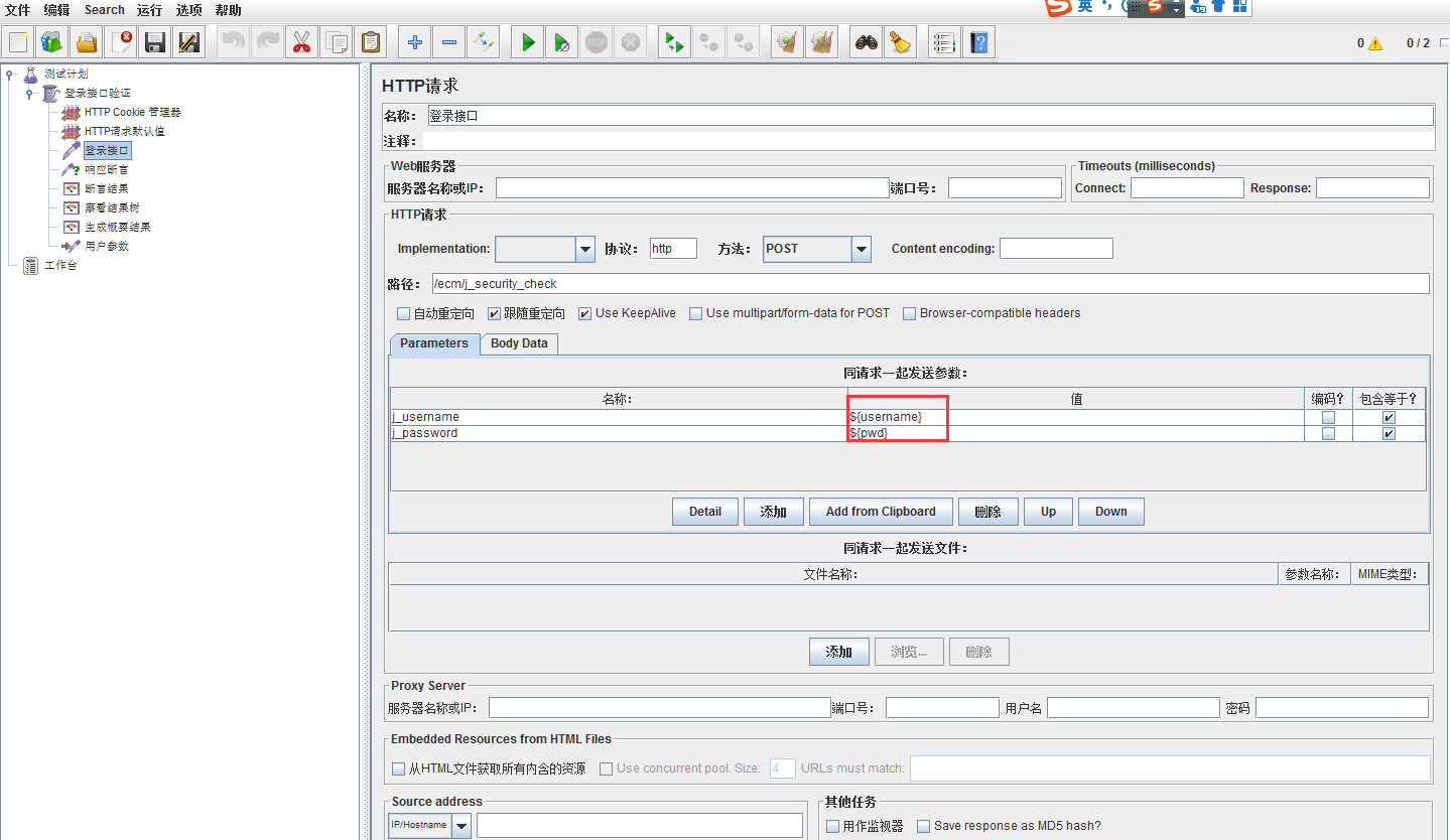 3、返回到接口请求处,值列替换成${参数},参数名要和上图中参数列表中名称一致
