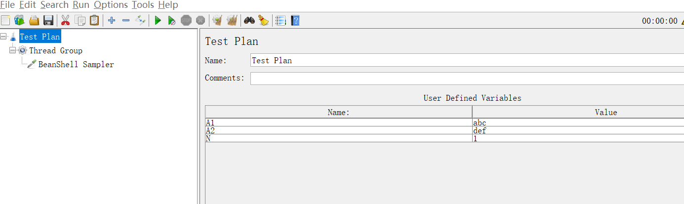 新建一个测试计划,增加三个变量