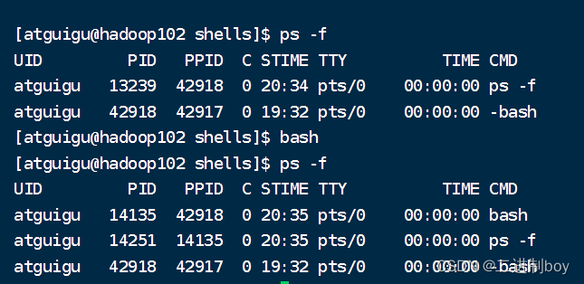 我们可以做下对比,进入子shell进程后,会多出一个bash进程,此时说明,在当前的子shell进程