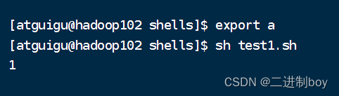 我们可以用 export a 命令通过将这个局部变量提升为全局变量