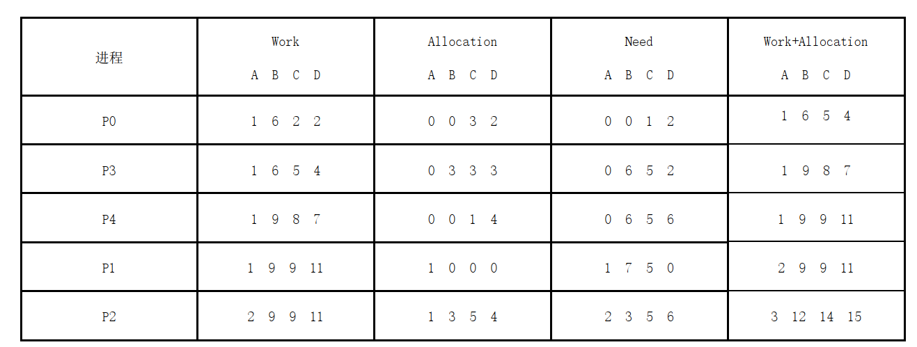 某系统中有五个并发进程同时请求ABCD四类资源,已知T0时刻资源分配情况如下表。按要求做题,要求有解题步骤: