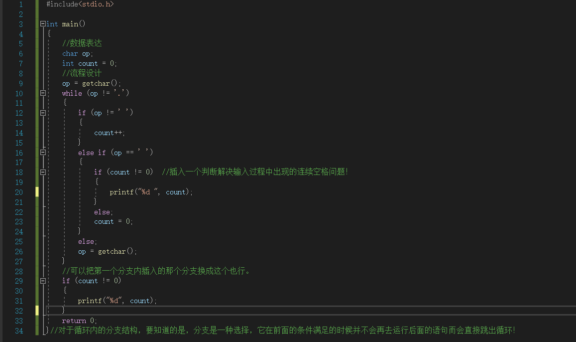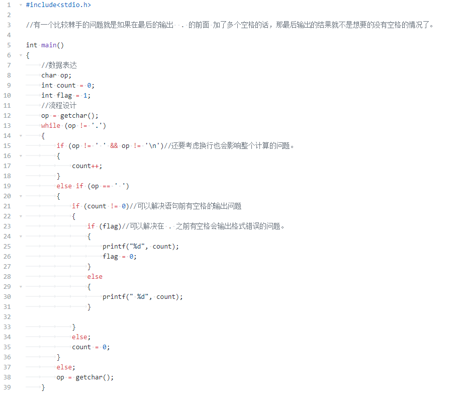 第二 将第二个输出的地方将条件从op == '.'改成了count != 0这也是为了解决连续空格问题。