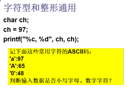 4.字符可以通过ASCII码表和整型相通: