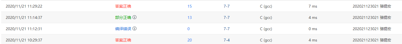 - 这里的多次提交可以分为两种类型的思路的交叉,原本的do-while结构能够满足10分的要求,但是对于 空句子 连续空格 和 开头结尾多空格的小细节不好处理。