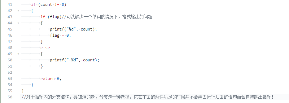 - switch-case结构的语句可以利用好没有break情况下的连续执行语句的效果来进行庞大一常量条件的读取.比如各类字符量的统计那一道题目可以借鉴.