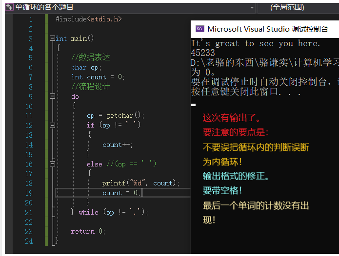 这里是发现了从do-while换成while时忘记该换输出语句的位置,导致了大错误!