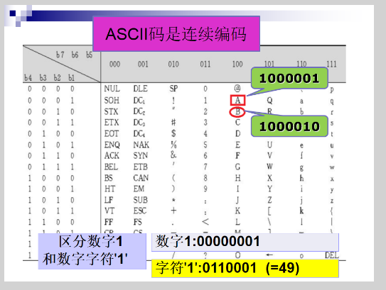3.关于ASCII码表和字符的关系: