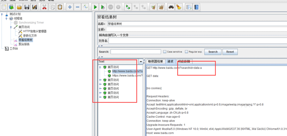 请求参数中searchid是data-a,说明数据是从头开始取的,也就是数据是遍历后循环的。参数化完成了。