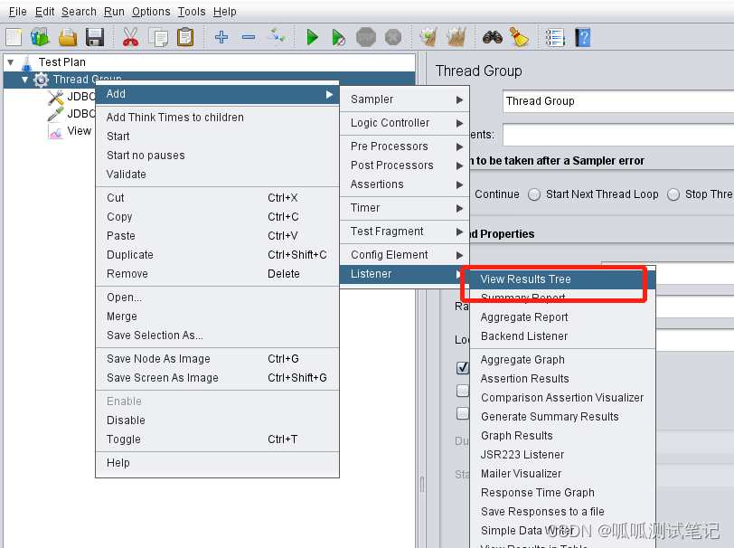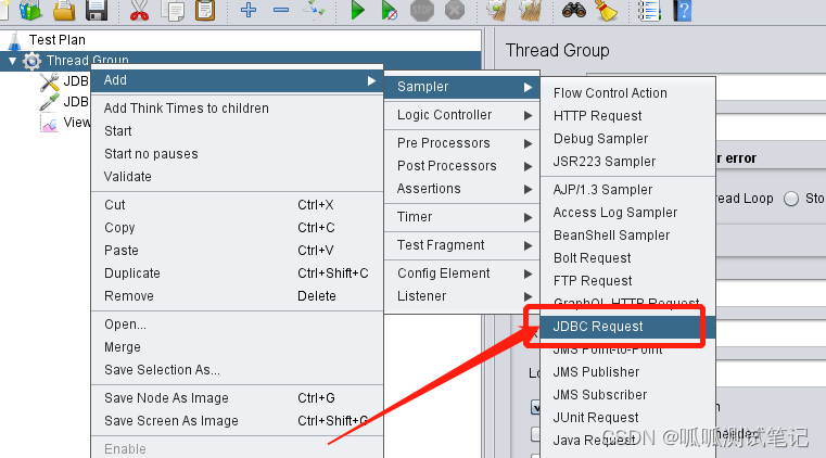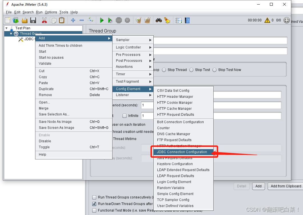 5、在该线程组下添加配置原件JDBC Connection Configuration