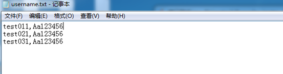 4、 创建参数化的文件,对用户名和密码进行参数化,参数化文件如下图(注意最后一行不要有空格):