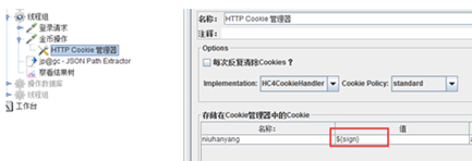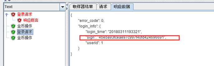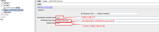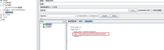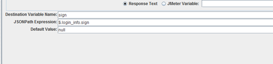登录成功后返回的是一个json格式的结果,它都是key:value的格式,我们要取的值为sign的值;通过观察我们可以看到sign在login_info的value值中,所以我们要取Sign的值就可以写成 $.login_time.sign,配置如下图: