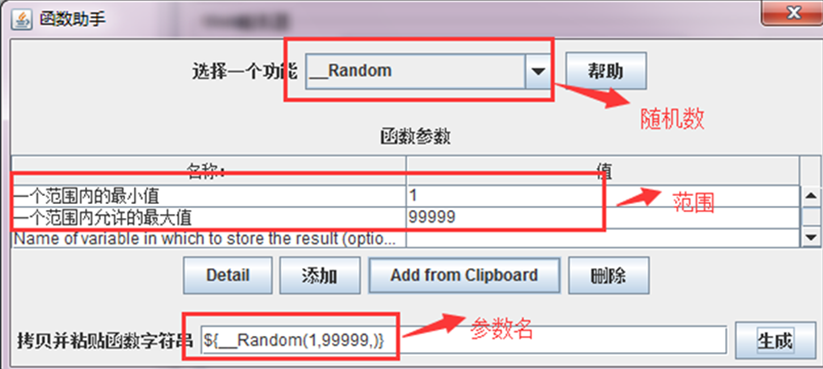 函数助手的话可以随机按照规则生成一些参数,比如生成随机数,随机数取当前时间等。最长用的就是如下两种