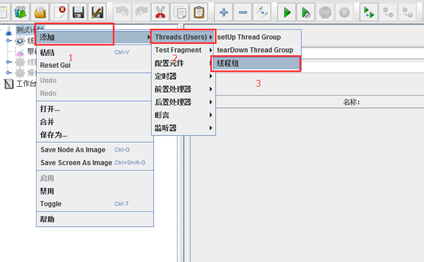 1、 首先在Jmeter下创建一个线程组,如下图: