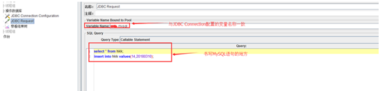5、 添加JDBC request请求,如下图: