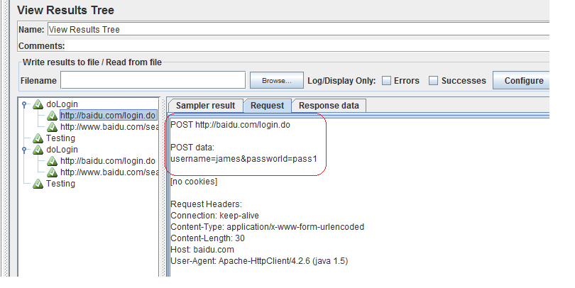 在使用Jemeter做压力测试的时候,往往需要参数化用户名,密码以到达到多用户使用不同的用户名密码登录的目的.这个时候我们就可以使用CSV Data Set Config实现参数化登录: