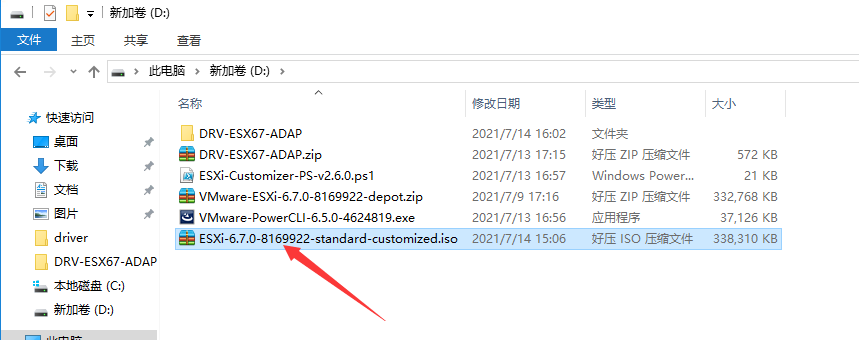 注意 D:DRV-ESX67-ADAPDRV-ESX67-ADAP 会出现两层目录删除一层