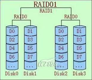 RAID 01是先做两个RAID 0,然后整体在做一个RAID 1,所以RAID01虽然可以坏多快 盘,但是只能坏在同一个RAID 0 里,不允许两个RAID 0内都有坏盘,否则就会造成 数据缺失。