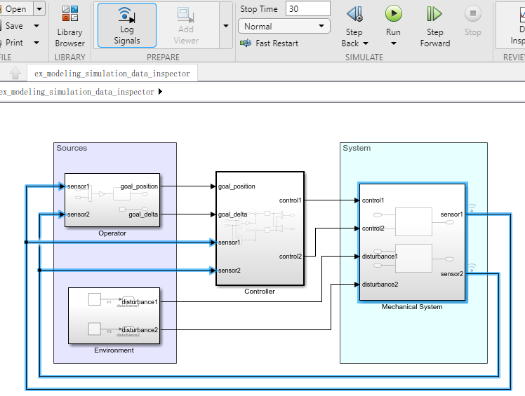 如果使用Data Inspector,那么就替代Scope模块,减少信号线数量,让模型更加简洁,效果如下:
