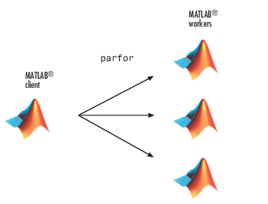 在这个实例中需要内置for-loops。for-loops是慢的并且使用parfor-loops替代来加速。parfor分块执行for-loops迭代在并行池中的workers。