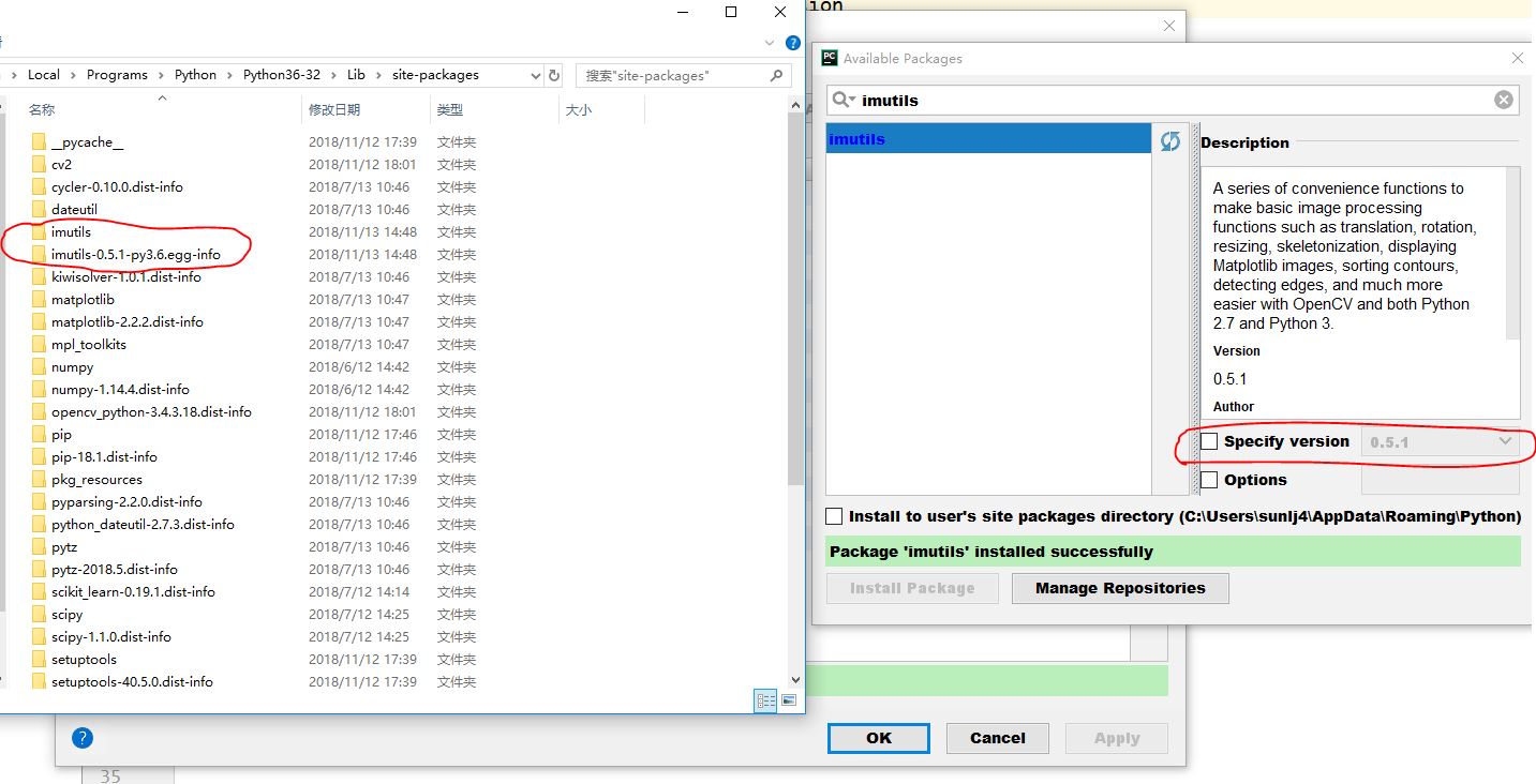 如果要安装opencv,只需要输入opencv-python即可。如安装了模块imutils后,在site-packages文件夹下会增加该模块,如下图。