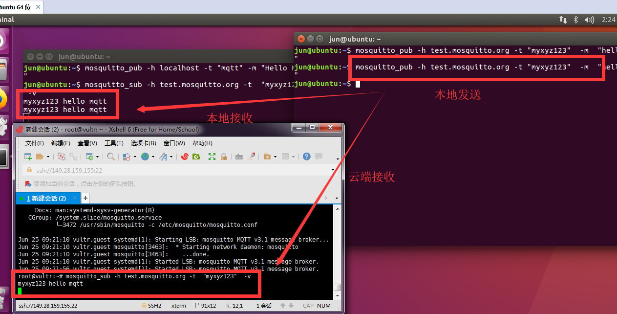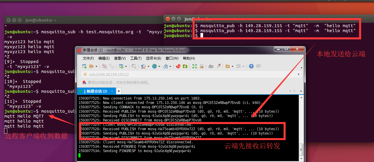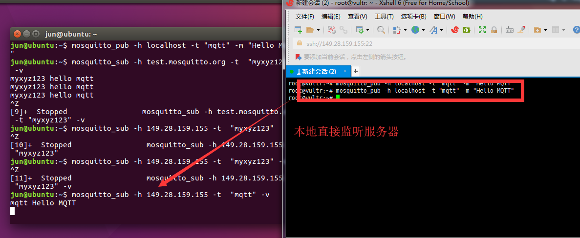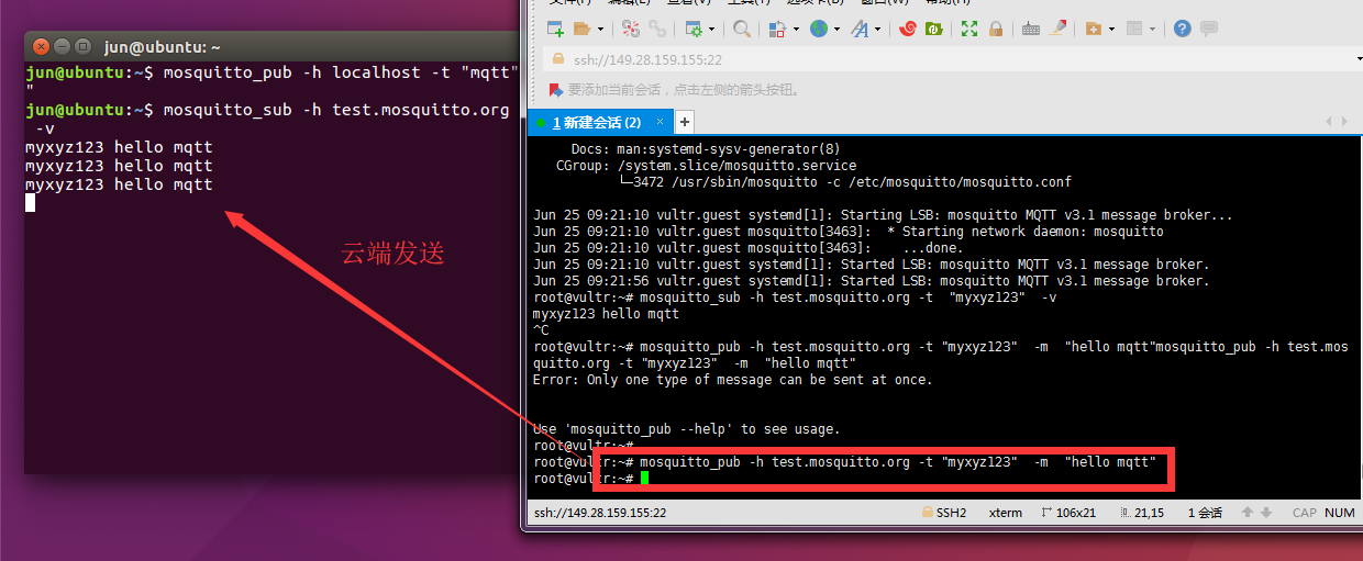 #打开另外一个终端,发布消息到主题 “mqtt”