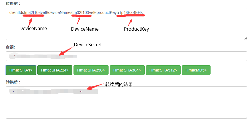密 码:用DeviceSecret作为密钥对clientId*deviceName*productKey#进行hmacsha1加密后的结果 注意加密时对符号进行替换