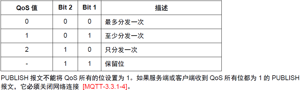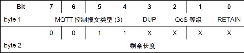 位3 DUP设置为0时,表示这是客户端或服务端第一次请求发送这个PUBLISH报文,设置为1时,表示这可能是一个早期报文请求的重发。