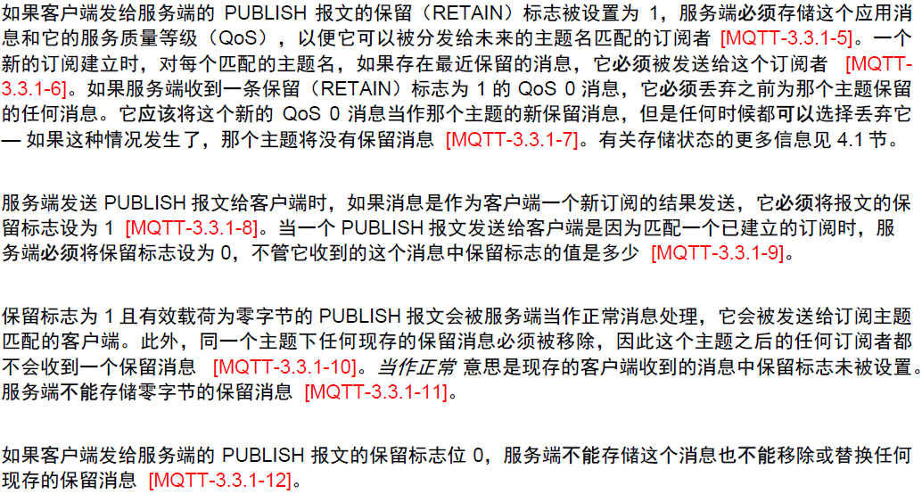 有效载荷包含将被发布的应用消息,数据的内容和格式是应用特定的,有效载荷的长度这样计算,用固定包头中剩余长度字段的值减去可变报头的长度。包含零长度有效载荷的PUBLISH报文是合法的。