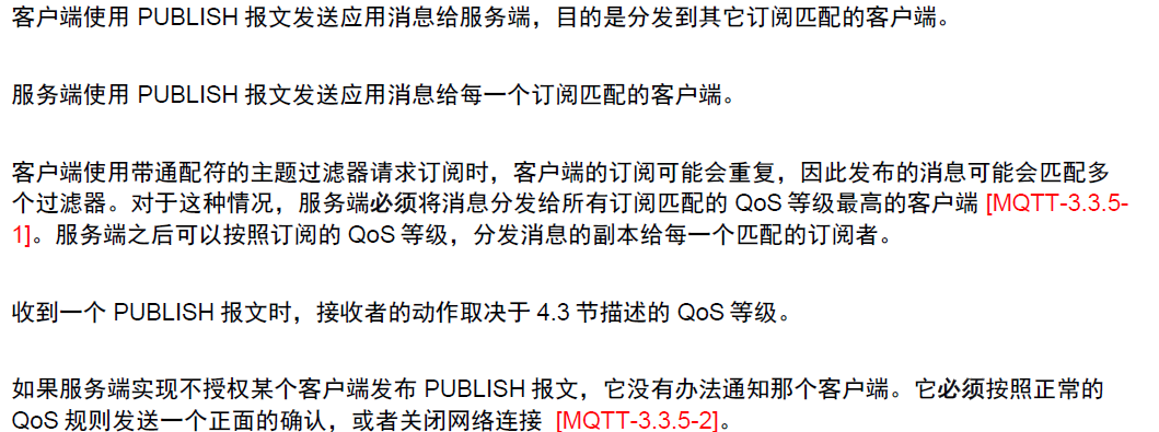 PUBLISH报文的接收者必须按照根据PUBLISH报文中的QoS等级发送响应。