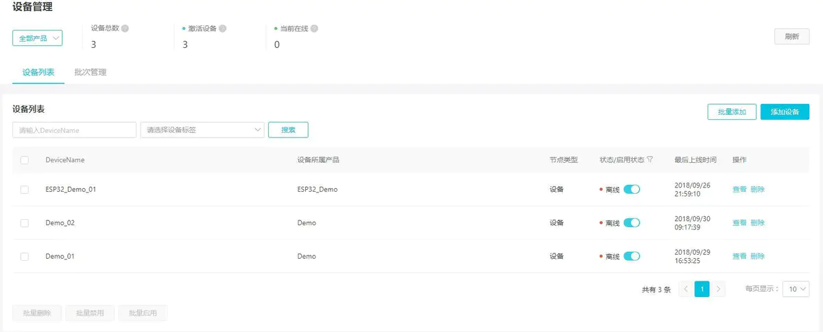 在云端建立一个高级产品,并创建两个设备,以供ESP32 和PC连接。