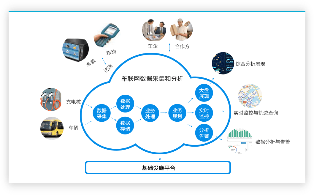 数据采集:大量的车辆连接,几十万甚至上百万量车,数据要实时双向互通,数据有上传,也有下推数据,需要保证实时高并发可靠传输。