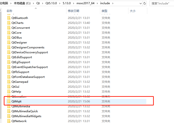 其次,请记得将你的QtMqtt项目文件夹拷贝到 你指定的编译器下 include文件夹中(如果已经存在请忽略)。如下图