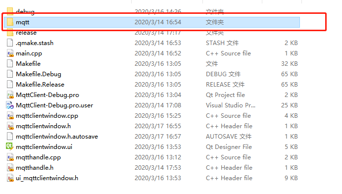 记得将mqtt文件夹拷贝到项目文件目录下,如下图: