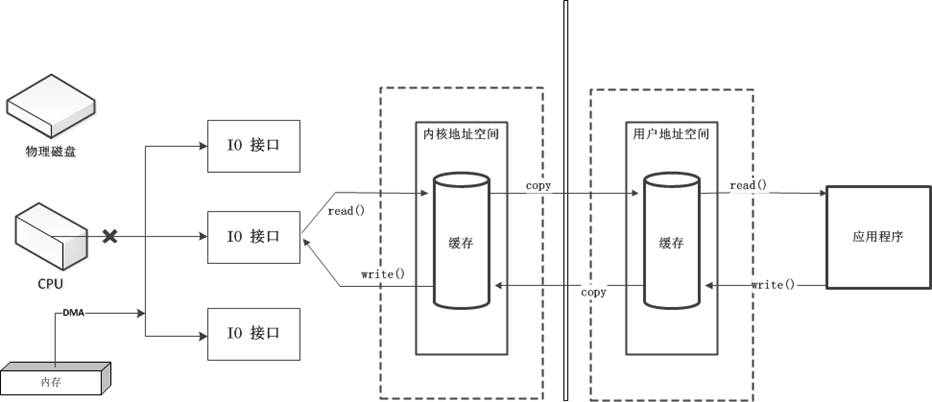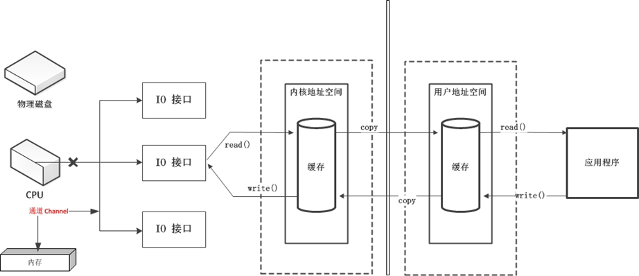 以非直接缓冲区为例,应用程序获取数据需要经过用户空间,然后内核空间,再读取数据,所有的读取操作在NIO是直接由CPU负责的。这个流程会存在一些问题,当我们有大量的文件读取操作的时候cpu他的利用就很低,因为IO操作直接抢占CPU的资源,就不能够去做其他的事情,所以他的效率就会变低。