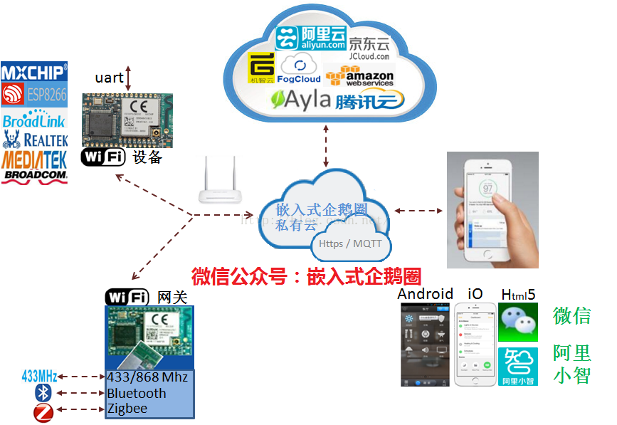 5. 安全也是公有云和私有云的重中之重,SSL被广泛使用,使用HTTPS接入验证,使用基于SSL的MQTT。
