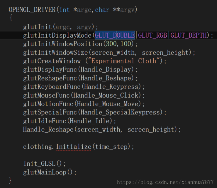 以上就是落寞宝马最近收集整理的关于OpenGL---GLUT(一)1.glutInit(int*argc,char**argv);2.glutInitDisplayMode(unsighed int mode)定义显示方式3. glutInitWindowPositon(int x,int y);4.glutInitWindowSize(int width,int height);5.glutCreateWindow(char* title);6.glutDisplayFunc(void (*func)(void));7.glu的全部内容,更多相关OpenGL---GLUT(一)1.glutInit(int*argc,char**argv);2.glutInitDisplayMode(unsighed内容请搜索靠谱客的其他文章。
