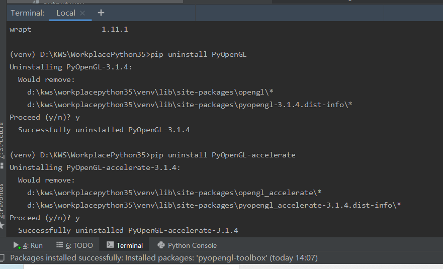 pip uninstall PyOpenGL